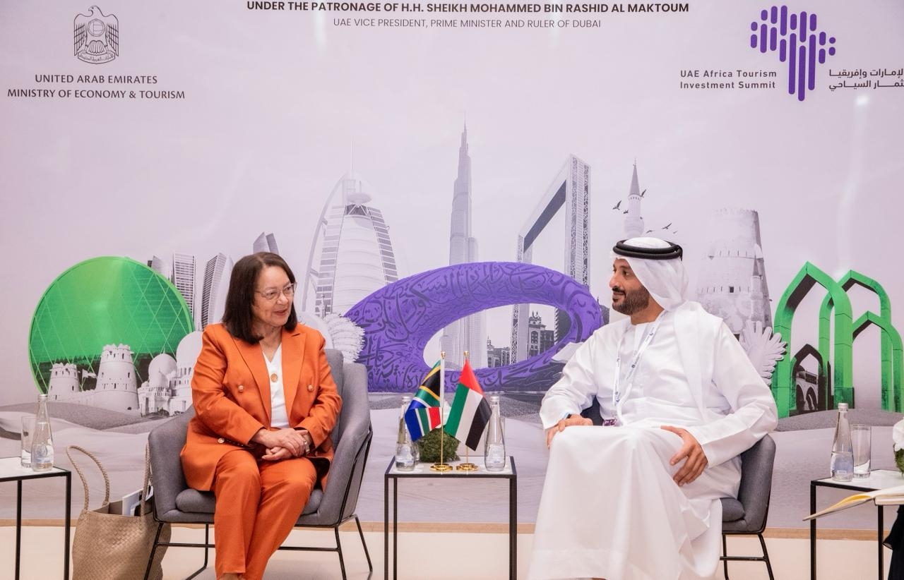 وناقش الطرفان آليات تعزيز الاستفادة من "قمة الإمارات وإفريقيا للاستثمار السياحي" بما يساهم في دعم الاستثمارات السياحية المتبادلة بين البلدين، وتشجيع إقامة مشاريع سياحية جديدة ومتنوعة على صعيد القطاعين الحكومي والخاص، لتعزيز النمو الاقتصادي وتطوير البنية التحتية السياحية بما يخدم رؤية كل من الإمارات وجنوب إفريقيا في هذا المجال الحيوي.